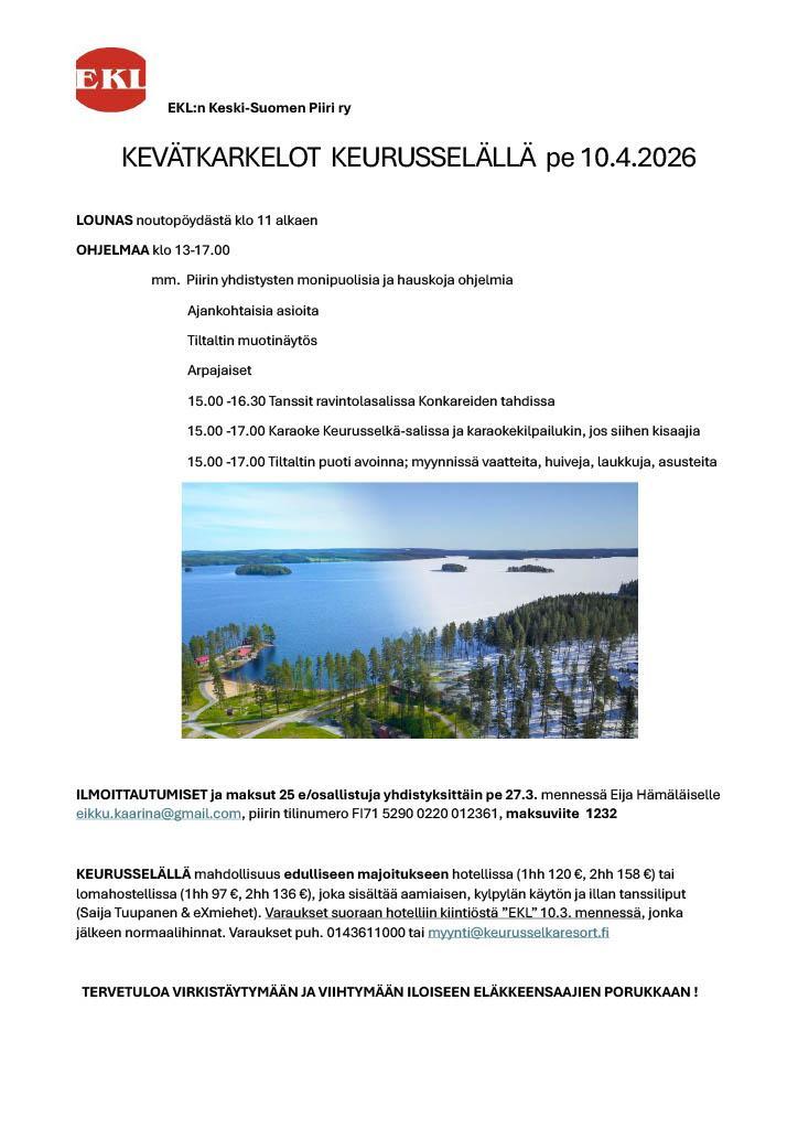5.5.2026 Äänekosken Eläkeläisten kanssa lähdetään LÄTTÄHATTU-reissulle Tuuriin. Aikataulu ja hinta varmistuu myöhemmin.