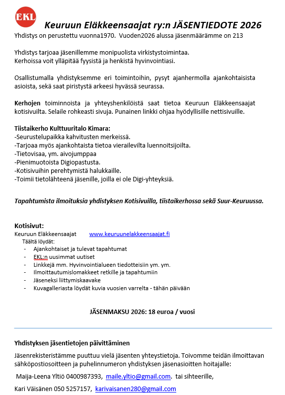 JÄSENTIEDOTE 2026