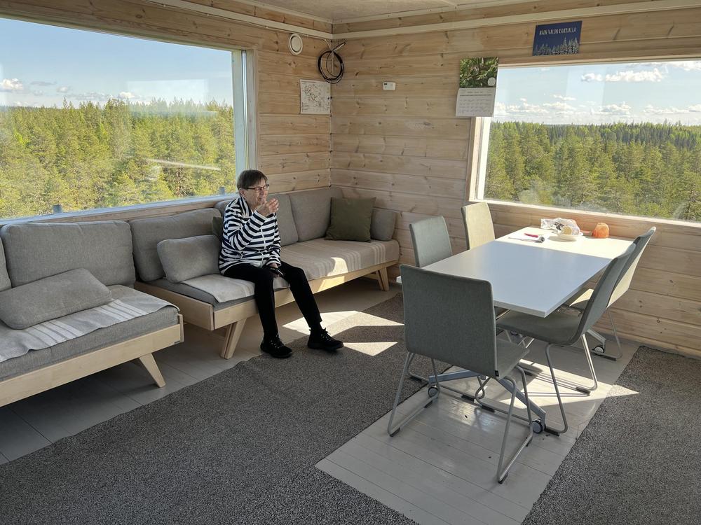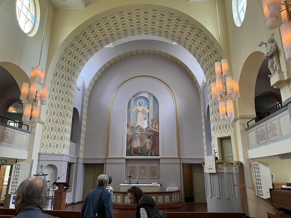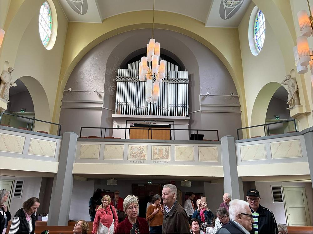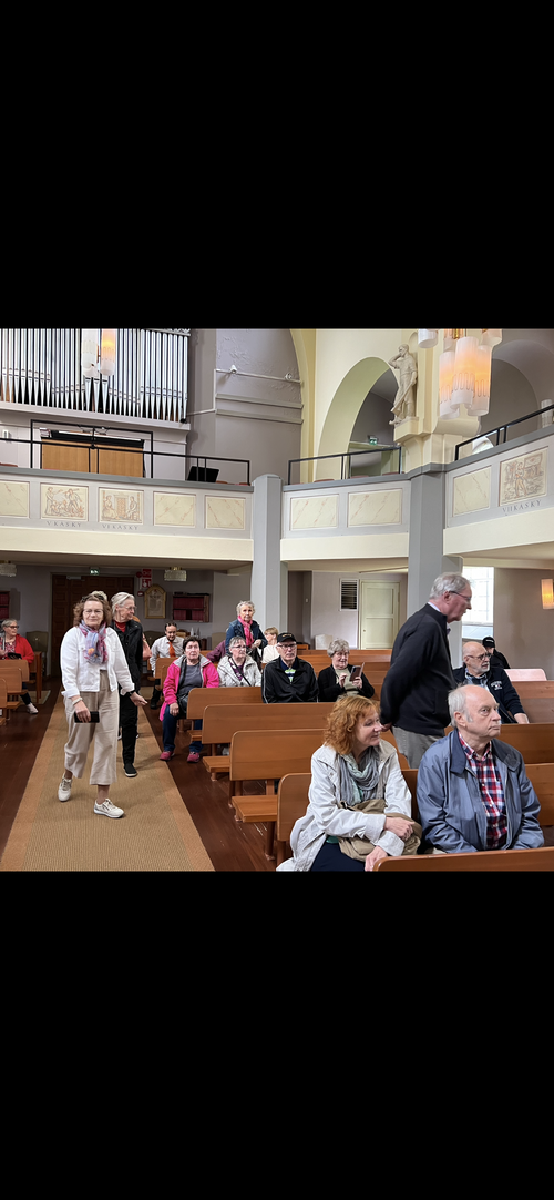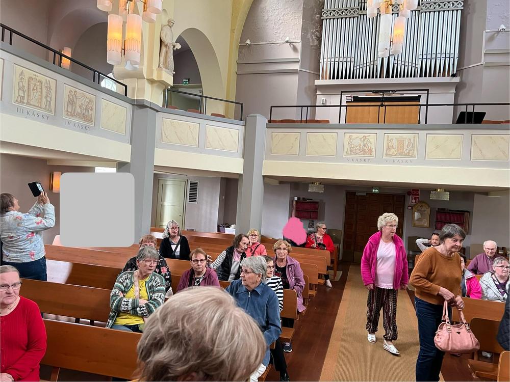 Seuraava kohteemme olikin maittava Lounas Konneveden satama-ravintolassa. Lounaan jälkeen olimmekin jo reippaina jatkamaan ulkoilua AUTERE-risteilylaivalla Etelä-Konneveden kansallispuiston kauniissa maisemissa. Kipparilla oli mielenkiintoisia kertomuksia menneiltä vuosilta. Tarinat Kekkosen "kalastusretkistä" varmaan jäi monen mieleen. Rantautumisen jälkeen saimme matkallemme loppusiunauksen Konneveden harmaagraniitti kivikirkossa.